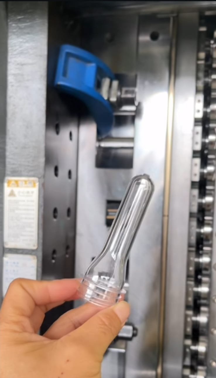 Preform PET adalah bentuk perantara setengah jadi dari polietilen tereftalat (PET) yang menyerupai tabung kecil dengan ulir leher, diproduksi melalui injection moulding sebelum ditiup (blow moulding) menjadi botol plastik. Bahan ini digunakan untuk kemasan air mineral, minuman, kosmetik, dan farmasi karena kekuatannya.